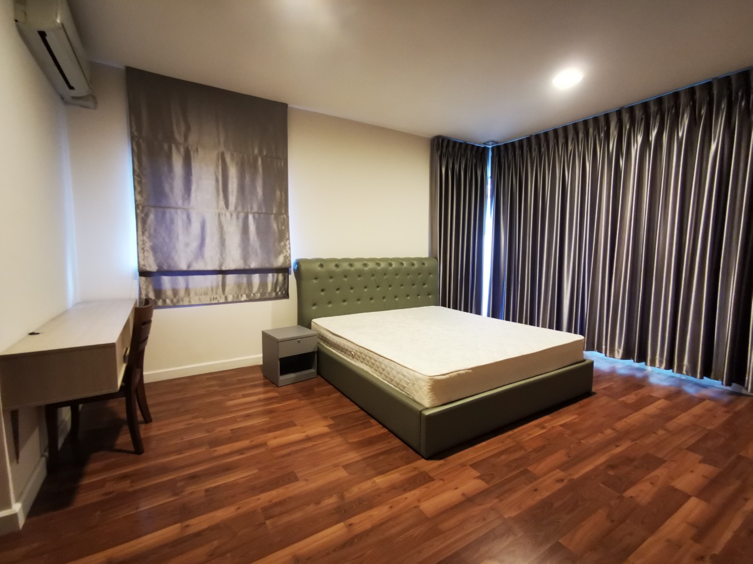 ห้องนอนใหญ่: เตียง ฟูก โต๊ะเครื่องแป้ง โต๊ะหัวเตียง แอร์