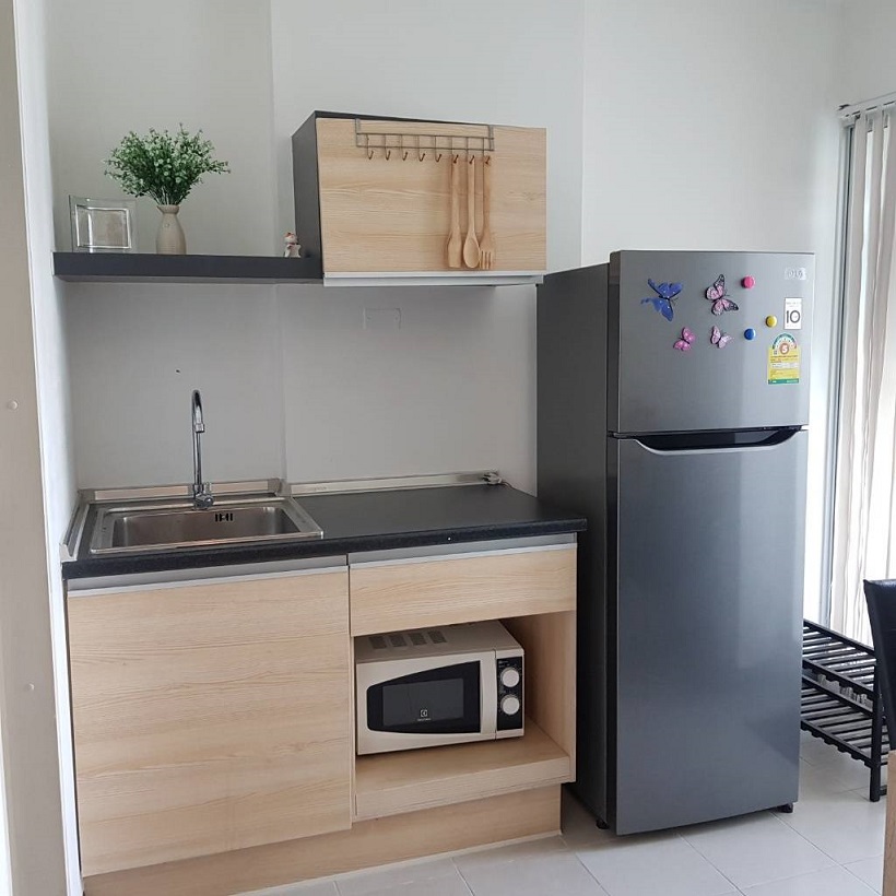 - แอร์ 2 เครื่อง , เตียงนอน 5 ฟุต , ตู้เสื้อผ้า , TV , ตู้เย็น , ไมโครเวฟ , พัดลม , เตรื่องทำน้ำอุ่น , โซฟา , โต๊ะวางทีวี , เคาน์เตอร์ครัว