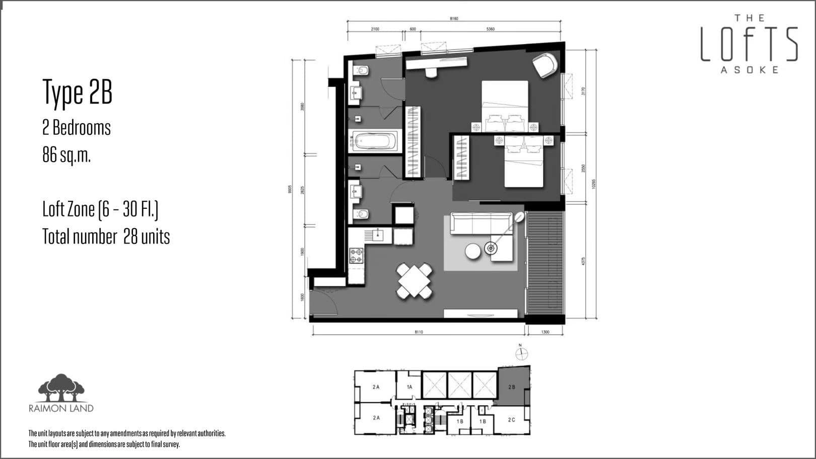 ขนาดห้อง 87 ตร.ม. ชั้น 22 ทิศตะวันออก