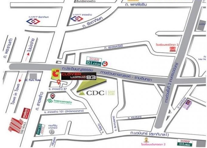 ให้เช่า คอนโด Clover Ladprao 83 (โคลเวอร์ ลาดพร้าว 83) ใกล้ ด่านลาดพร้าว 1.7 กิโลเมตร