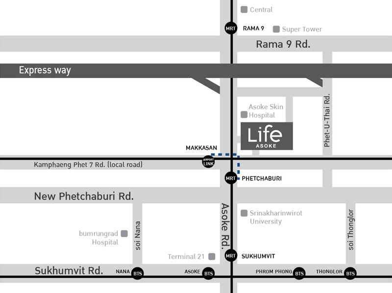 ให้เช่า คอนโด Life Asoke (ไลฟ์ อโศก) ใกล้กับ MRT เพชรบุรี 21 เมตร