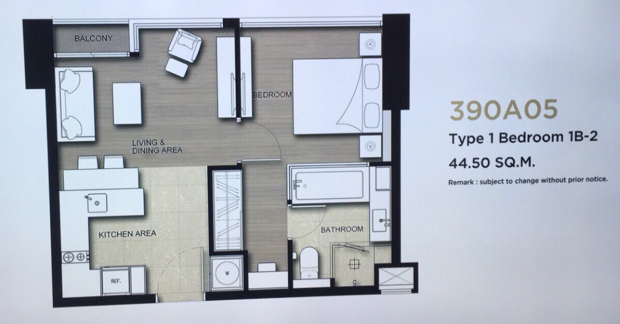 ขนาดห้อง 44.5 ตร.ม. ชั้น 39 ทิศเหนือ